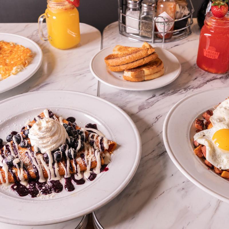 My new favorite breakfast place! Service is wonderful, even though they were so very busy we were taken care of. The country gravy was the perfect mix of creamy and savory. Went great on the chicken fried steak. Not pictured but I got a Bloody Mary and added a slice of bacon; it's my jam; Also must try the blueberry batter pancakes with blueberry Danish topping, doesn't even need syrup.