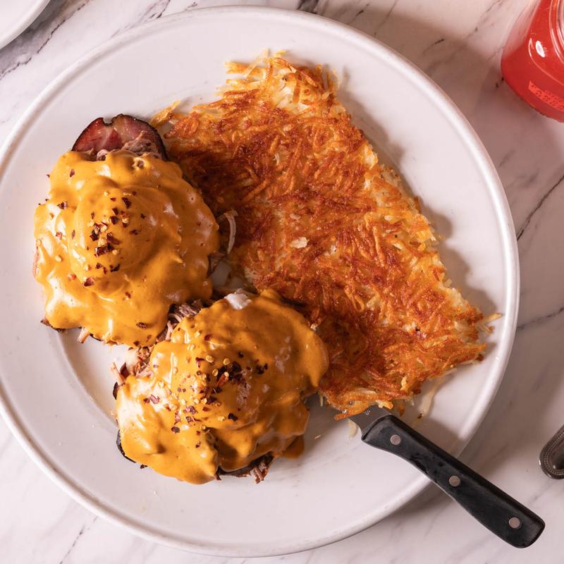 The service was really good. With in getting seated the waitress was at our table taking our order and within 15 minutes our food was in front of us. The food was excellent I had the Cuban Benedict and the taste was amazing my wife had the eggs and hash browns she said the eggs were cooked perfectly. We both shared the pancakes and they were fluffy and delicious. Definitely will visit this restaurant again